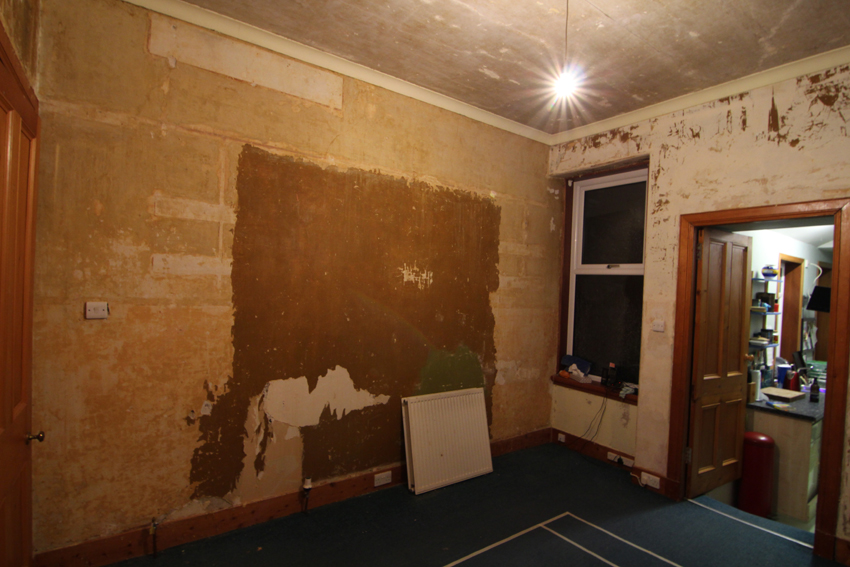 Previous ImageNext Image IMG_2506a Breakfast room stripped for action, showing the partition wall to the back room and the existing radiator removed.
