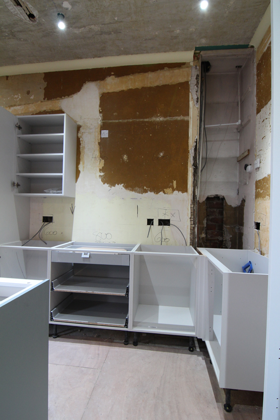 Previous ImageNext Image IMG_2535a Breakfast room – day 3. Some carcasses fitted. Old hot water cylinder removed and pipework started to enable a new pressurised system.
